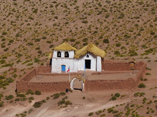 Le désert d’Atacama est considéré comme le désert des déserts, le plus sec de tous, le plus aride au monde. Par endroits il n’a pas plu depuis une centaine d’années ! Pourtant, dans certaines parties souterraines, des eaux saturées en sel ruissellent, remontent à la surface, puis sous l’effet de la chaleur intense se cristallisent pour former une croûte de sel et de minéraux. Cela crée les salars, d’immenses dépressions salines, et le salar d’Atacama situé au sud de San Pedro, dépassant les 100 kilomètres de long, est le plus grand du Chili. Du pittoresque village de Toconao et ses maisons en pierre blanche volcanique, on distingue au loin les exploitations de lithium dont le Chili est le premier producteur mondial. Non loin, la laguna de Chaxa qui fait partie de la « Reserva Nacional Los Flamencos » regroupe trois espèces de flamants (flamants de James, du Chili et andins) venus se nourrir sur ce plan d’eau. A partir du village préhispanique de Socaire niché à 3218 m d’altitude et dont les 380 habitants disposent de deux églises typiques au toit de chaume, la piste grimpe à travers les steppes sauvages de couleur jaune où pousse la paja. Puis soudain, au détour d’une butte, à 4200 m d’altitude, surgit la laguna Miscanti, sublime lac couleur bleu azur surplombé par le volcan Miscanti (5834 m) devant lequel paissent des vigognes. L’endroit est féérique et quelques instants plus tard, à deux pas, avec la laguna Miñiques dominée par le volcan du même nom qui culmine à presque 6000 m, c’est l’extase ! Avec ses eaux d’un bleu turquoise renforcé par la couronne immaculée de cristaux de sel qui se forme sur le pourtour, la laguna rayonne sous le soleil dans ce milieu plutôt minéral et l’on a bien du mal à quitter l’endroit.