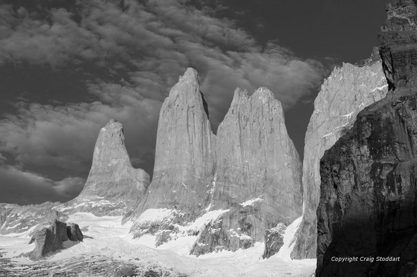 Saint Graal que tout visiteur souhaite photographier, les fameuses tours de granite se dressent au nord-est du massif et au nord-ouest de la Vallée Ascencio. C’est d’ailleurs par cette dernière que l’on accède à la base des 3 pitons rocheux. Le Glacier Torres et sa lagune vert opaque se déploient aux pieds alignés, d’est en ouest, de la Torre Sur (2850m), de la Torre Central (2800m) et de la Torre Norte (2600m). Un spectacle magique qu’il est émouvant de contempler au lever du soleil, lorsque ses rayons diffusent ses lueurs orangées, sur les aiguilles effilées des Torres del Paine.