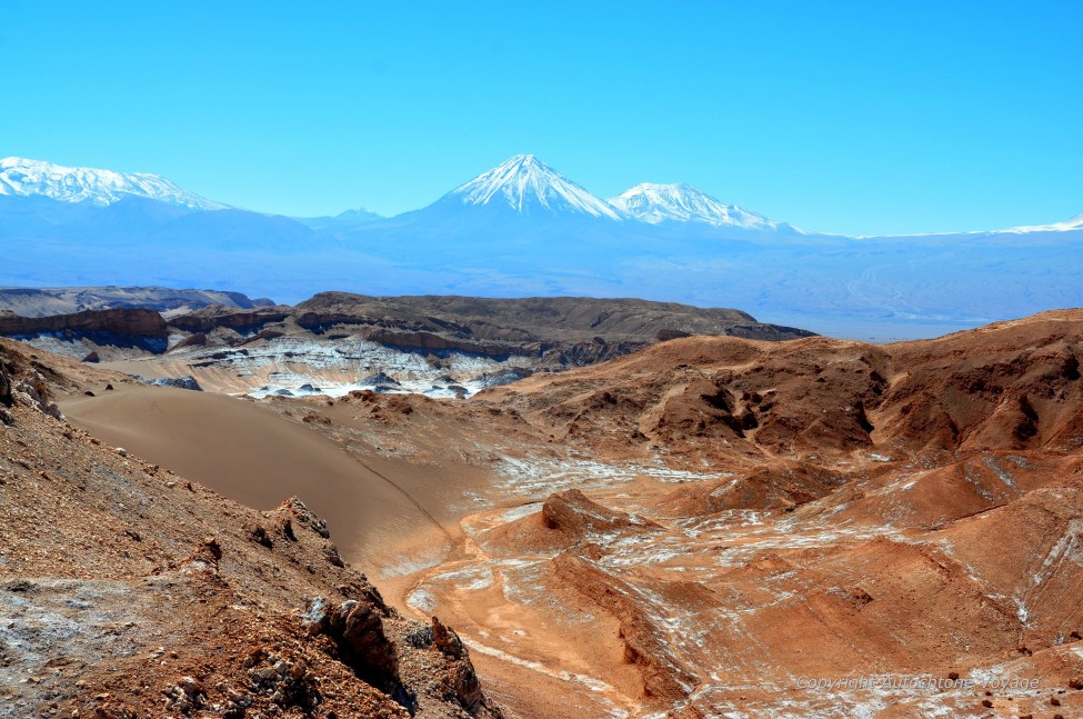 Le Salar d’Atacama, 5ème plus grand lac salé au monde vous accueille ce matin et vous dévoile sa blancheur éblouissante et ses formes dentelées incongrues. Un flamant rose prend son envol depuis la lagune et tournoie gracieusement au-dessus de vos têtes, Plus rien ne manque au panorama… peut-être quelques sommets en arrière-plan ?