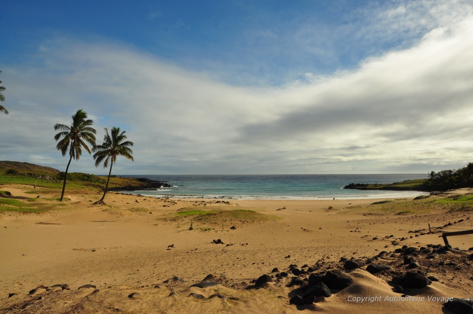 Puis vous entamez la redescente sur la face nord, que peu de personne empruntent. Grottes, Ahu, et autres vestiges de la culture passée, votre guide vous permet d’en savoir d’avantage sur le mystère entourant l’île. Votre randonnée se conclut par l’arrivée magique sur la plage d’Anakena, berceau de la culture Rapa Nui, d’où se détachent 6 énigmatiques moais.