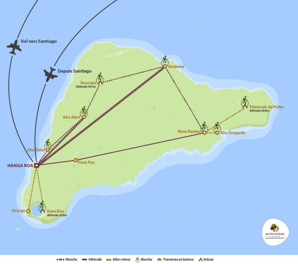 Jour 1 DÉPART AÉROPORT SANTIAGO – VOL POUR HANGA ROA – TREKKING RANO KAU - ORONGO