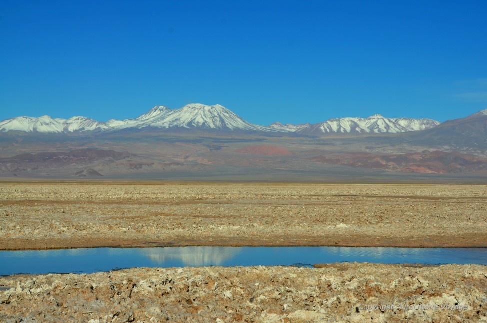 Un spectacle grandiose se dégage sous vos yeux. Les montagnes ocre, rouges, taupe, saupoudré de gris, surplombent un salar inondé, passant du bleu turquoise au vert émeraude. La teinte vermeille de la roche qui l’enserre offre un contraste de couleurs somptueux que seule une envolée de flamants roses pourrait sublimer ! Ah les voilà !