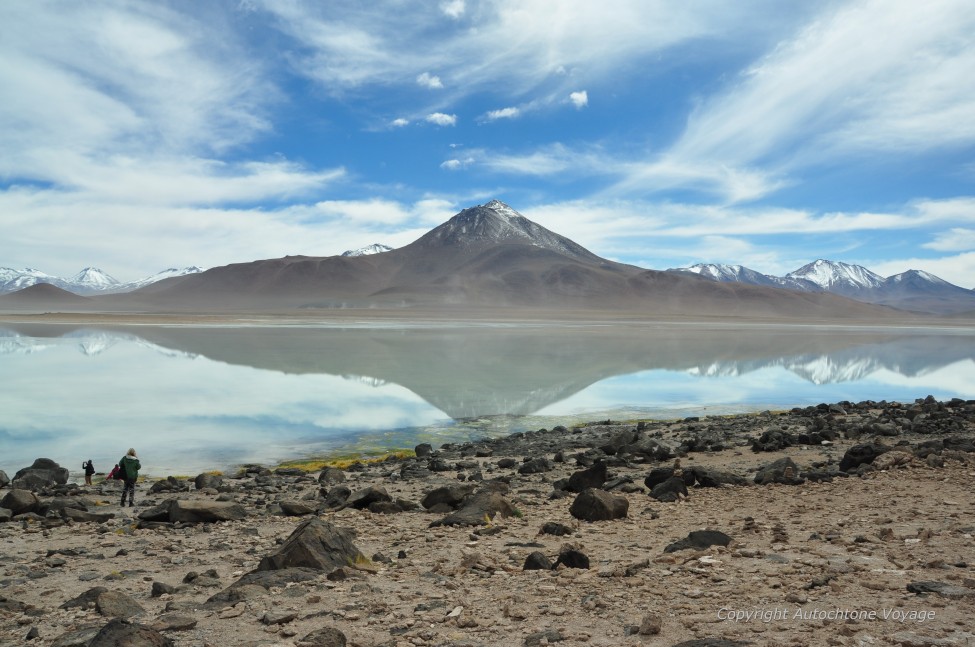 Redescente ensuite vers le Salar de Chiguana situé à 3650m d’altitude, s’étendant au pied du volcan Tomasamil (5870m).