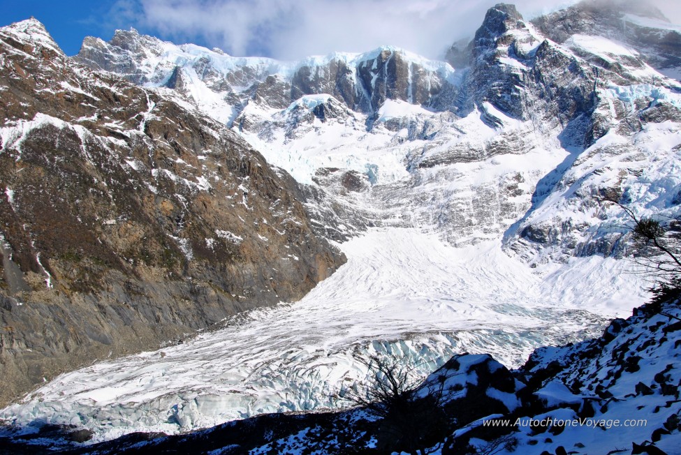 Le retour jusqu’au campement Italiano s’effectue par le même chemin. Puis vous bifurquez à l’est, bordant le lac Nordenskjöld pendant une heure et demi environ jusqu’à rejoindre le refuge de Domos Francés.