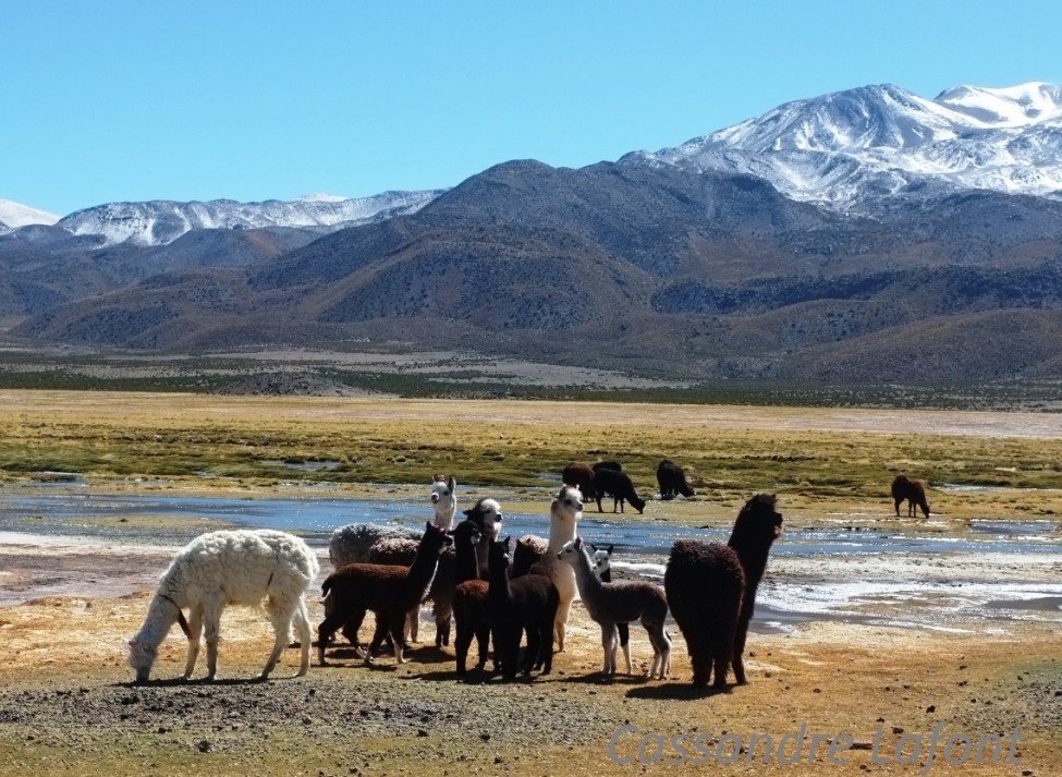 Découverte des villages altiplaniques aymara, surplombés par le sommet enneigé du volcan Guallatiri. Le Salar de Surire est un lieu idéal pour admirer les 3 différentes espèces de flamants roses s’envoler au-dessus d’un immense lac salé. Les suris (espèce d’autruche qui donne son nom au parc) et les familles de vigognes, lamas et alpagas gambadent sereinement sur la toundra altiplanique.