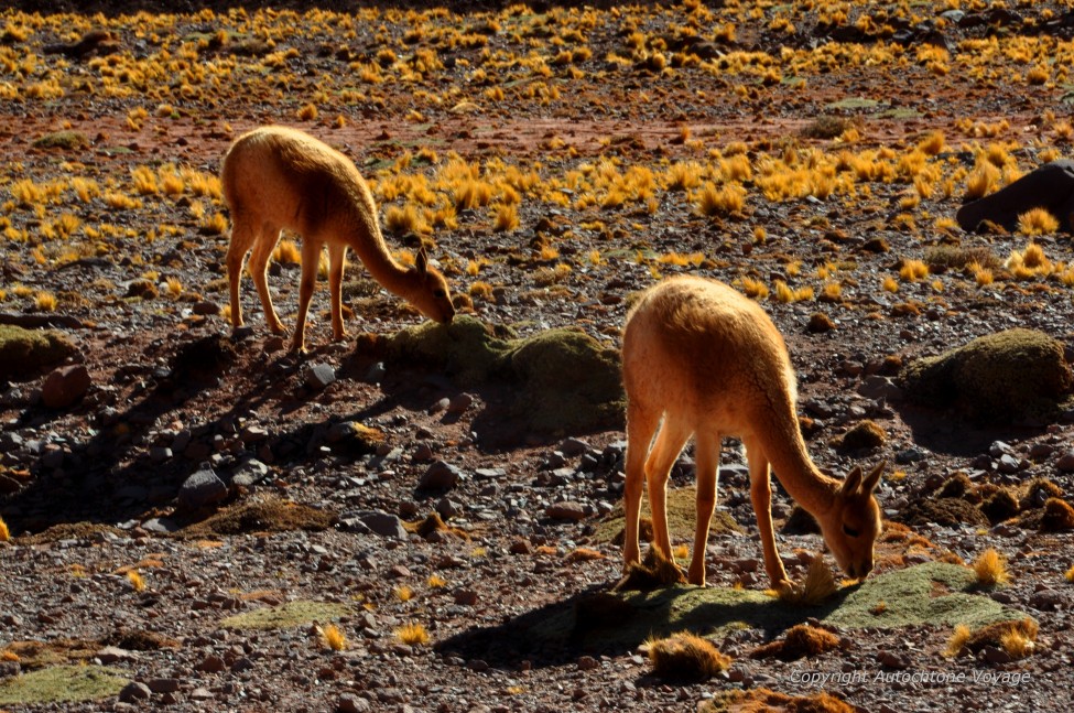 Les parures andines chamarrées, le ciel bleu, les lagunes turquoise, les roches minérales et les dégradés de vert des oasis sont autant de teintes et de nuances qui magnifient et pimentent ces paysages étonnants. Le sol, dépourvu de végétation, s’étale comme pour mieux exposer à nos regards la formation de ses créations millénaires : salars, volcans, cordillères et canyons.