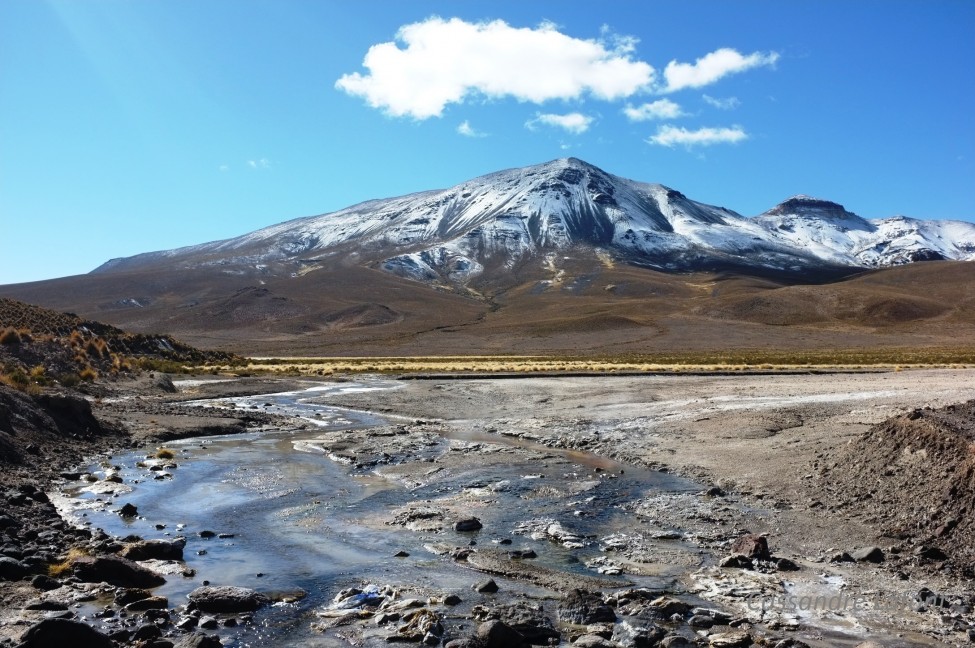 L’Altiplano, symbole de la Cordillère des Andes est une succession au cœur de paysages minéraux époustouflants parsemés des lagunes multicolores, teintés par la blancheur du lac salé de Surire, boursouflés de geysers sulfureux et surplombés de volcans aux formes coniques parfaites.